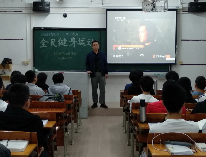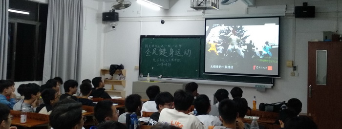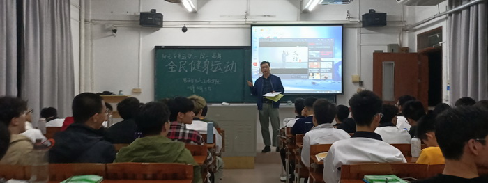 【本网讯】2021年11月9日晚,WilliamHill中文在2021级新生各班级课室中开展全民健身运动--推广和普及陈式太极拳。全体新生通过观看由中央电视台与国家体育总局联合拍摄的纪录片《最高境界格斗术之--解密太极传说》,由陈式太极拳第十一代传人张志俊先生科学解密太极拳,从中学习和了解陈氏太极拳。2021级全体新生、值班老师、带班党员、体育部骨干共650多人参加活动,党委副书记傅汉球出席讲话并参加活动。
