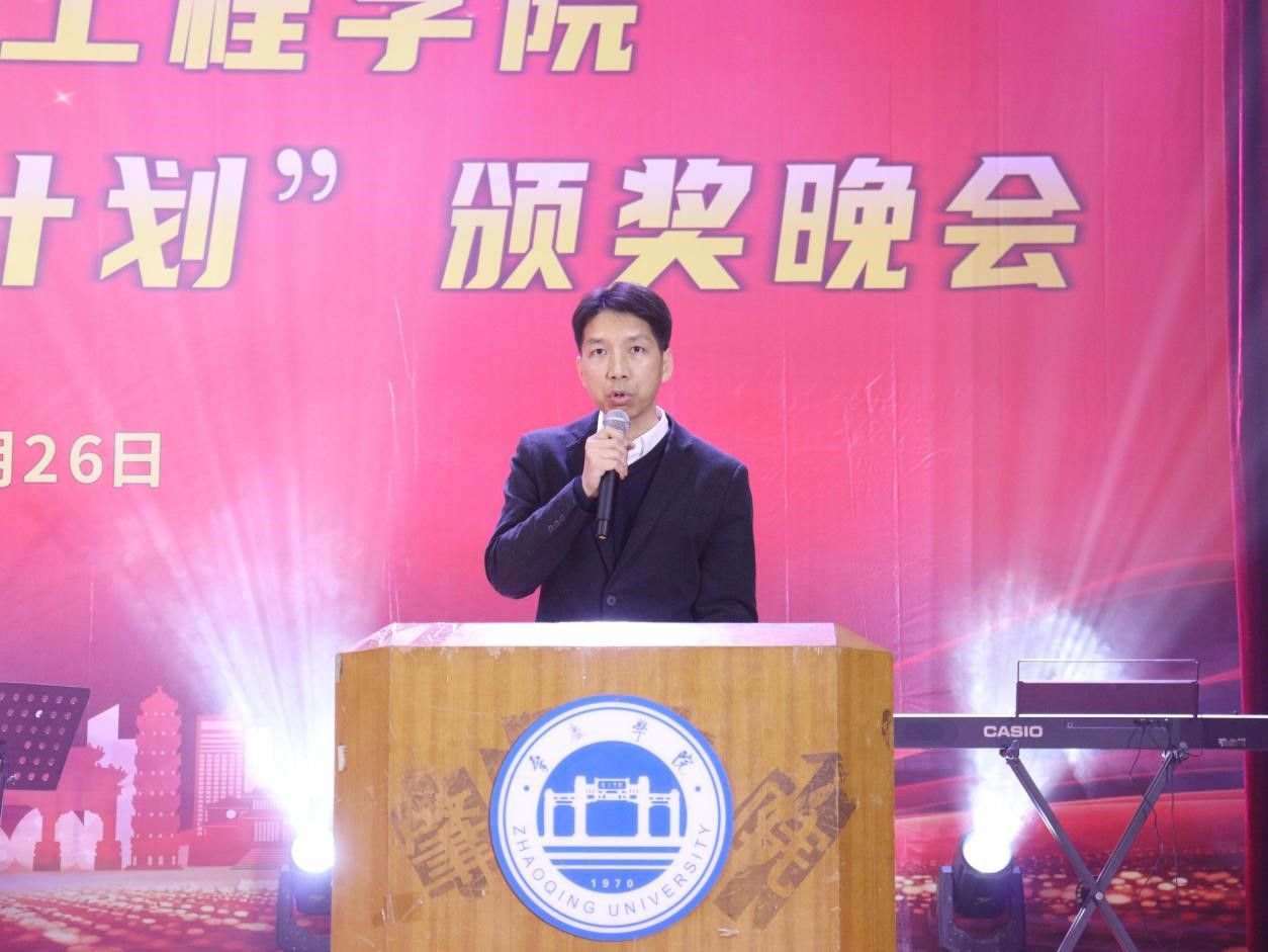 作为学院一年一度的品牌活动,本次晚会紧扣立德树人根本任务,旨在表彰学习科研、学生工作、学科竞赛、社会实践等领域的优秀个人与先进集体,树立榜样标杆,营造比学赶超的优良学风,同时搭建师生才艺展示与思想交流的平台,凝聚学院发展合力。 晚会伊始,党委书记王浩发发表讲话。他对获奖学子与团队表示热烈祝贺,肯定了他们在各领域展现的青春朝气与拼搏精神,并寄语全体学子立大志、明大德、成大才、担大任,将个人梦想融入学院发展与时代洪流,勉励师生携手书写育梦、筑梦、圆梦的新篇章。
